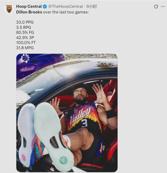 你还记得狄龙·布鲁克斯吗?自从从火箭转会太阳后,本赛季很多球迷就不再关注狄龙了。事实上,他打出了职业生涯最强劲的一个赛季。过去两场比赛,狄龙场均贡献33分、3.5个篮板和2次抢断,投篮命中率为60.5%,三分命中率为42.9%,罚球命中率为100%。本赛季到目前为止,狄龙已经为太阳队出场八场比赛,全部首发。场均出场29.9分钟,得到22分3.3篮板1.9助攻2抢断0.3盖帽2失误。他的三分球命中率分别为45.9%、33.9%和93.9%。狄龙的场均得分、抢断、投篮命中率和罚球命中率都是职业生涯最好的。相比之下,狄龙上赛季为火箭队首发75场常规赛,场均出场31.8分钟,得到14分3.7篮板1.7助攻0.8抢断。他的三分命中率分别为42.9%、39.7%和81.8%。在游戏中场均贡献12.3分3.1篮板1.3助攻0.7抢断,三分球命中率分别为44.4%、34.5%和83.3%。今年夏天,火箭送出2025年首轮10号秀杰伦·格林、狄龙·布鲁克斯和5个次轮选秀权,以8-1的交易从太阳队得到了杜兰特。每个人都各得其所,形成双赢的局面。火箭队有最终决定权。 KD总能在生死攸关的情况下反弹,而狄龙则为太阳队带来了防守力量。杜兰特本赛季为火箭队首发了12场比赛。场均上场36.1分钟,得到25.9分4.7篮板3.4助攻1抢断0.7盖帽3失误。他的三分球命中率分别为51%、40%和88.8%。虽然火箭队缺了后卫狄龙,但杜兰特的进攻非常出色,本赛季多次拯救火箭队于生死关头。为什么只写杜兰特和狄龙并写彼此?为什么不写贸易目标杰伦绿色的?格林大部分时间都在养伤,所以他回来了,打了一场比赛,然后又休息了。截至今天比赛,太阳队以8胜6负排名西部第八。在格林长期缺席期间,狄龙为太阳队的胜率保持在0.500以上发挥了关键作用。回到狄龙,在谈及进化的原因时,狄龙说道:“我喜欢激烈、充满冲突的比赛,但最完美的技能是得分,你可以彻底拿下对手。”布克这样评价狄龙的角色。 “我们有像狄龙和古德温这样的球员,他们非常善于面对对抗和激烈的比赛。” “狄龙的努力每天都在线上,增强了我们整个球队的实力,”太阳队主教练乔丹·奥特说道。除了场内表现外,狄龙还关注场外新闻。对于詹姆斯的“决定2”,狄龙表示:“詹姆斯已经不再重要了,他必须制造轰动,才能维持自己的状态。”狄龙出生于1996年1月22日,所以还不到30岁,身高和臂展都是1.98米。2017年选秀大会上,狄龙在第45顺位被火箭队选中,随即被交易到灰熊队。狄龙在灰熊队效力了六年,然后在2023年夏天以四年80美元的合同加盟火箭队。百万合同,季薪2112万美元 最后一个问题:你认为火箭与太阳的交易谁赢谁输?