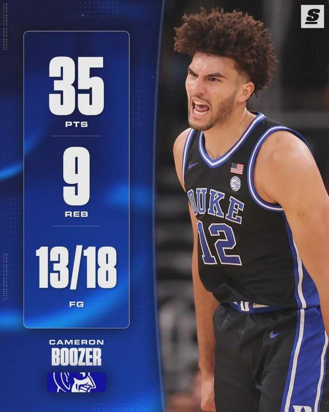 在NCAA比赛中,杜克大学以80-71击败阿肯色大学。爵士名宿卡洛斯·布泽尔之子卡梅隆·布泽尔再次爆发,18投13中、三分球4中2、罚球11中7拿下35分9篮板3助攻2抢断。球队得分80分,他却只得到35分。这个数字比NBA的数字还要难。卡梅隆·布泽尔本赛季为杜克大学打了 8 场比赛,其中两场得到 35 分。场均出场29分钟,得到22.9分9.8篮板3.9助攻1.8抢断1.1盖帽1.3失误。他的三分球命中率分别为57.8%、38.7%和76.3%。他是杜克队历史上第一位多次得分超过35分的新人。相比之下,2025年NBA状元弗拉格上赛季在杜克大学出战37场比赛,场均出场30.6分钟,得到19.2分、7.5个篮板、4.2次助攻、1.4次抢断、1.4次盖帽和2.1次失误。他的三分球命中率分别为48.1%、38.5%和84%。卡梅伦·布泽尔的数据比弗拉格好一点。就在本周,ESPN公布了最新的2026年模拟选秀名单,卡梅隆·布泽尔稳居第三位。 Darrin Peterson(堪萨斯大学)获得第一名,AJ DiVanza(杨百翰大学)获得第二名。除非有重大伤病,三兄弟都已经锁定了前三名的位置,但谁将被选为前三名仍然存在一些紧张局势。达林·彼得森出生于2007年1月17日,身高1.96米,翼展2.08米。 AJ迪万萨出生于2007年1月29日,身高2.01米,翼展2.06米。卡梅隆·布泽尔出生于2007年7月18日,身高2.06米,臂展2.13米。最后我们来看看大学人物德彼得森和迪万扎。由于腿筋受伤,彼得森只打了两场比赛,场均得到21.5分和3.5个篮板。他贡献了3次助攻、2次抢断、1次盖帽和2次失误。他的三分球命中率分别为60%、50%和77.8%。迪万扎在杨百翰大学场均贡献19.2分、6.8个篮板、2.2次助攻、0.7次抢断、0.3次盖帽和2次失误。他的三分球命中率分别为51.3%、33.3%和76.2%。最后一个问题:你最看好哪位球员被选为2026年状元秀?